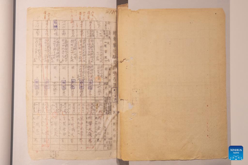 The document contains the real names and personal information of 414 members of Unit 516, which was set up by the Japanese army in May 1939 in Qiqihar City of northeast China's Heilongjiang Province, according to the Exhibition Hall of Evidences of Crime Committed by Unit 731 of the Japanese Imperial Army in Harbin, Heilongjiang's capital.