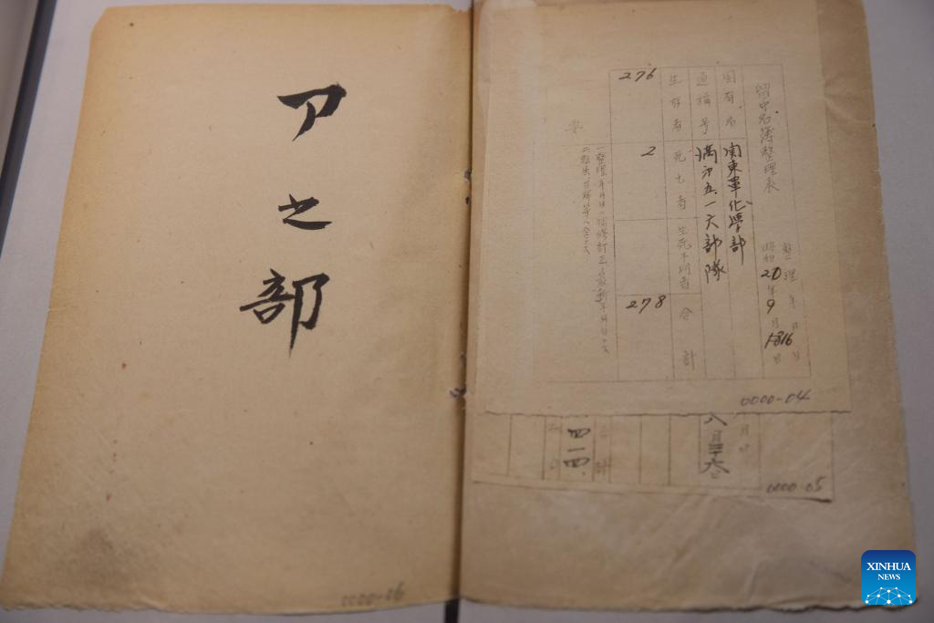 HARBIN, Aug. 15 (Xinhua) -- A roll of a Japanese chemical warfare unit was revealed for the first time in China on Monday.