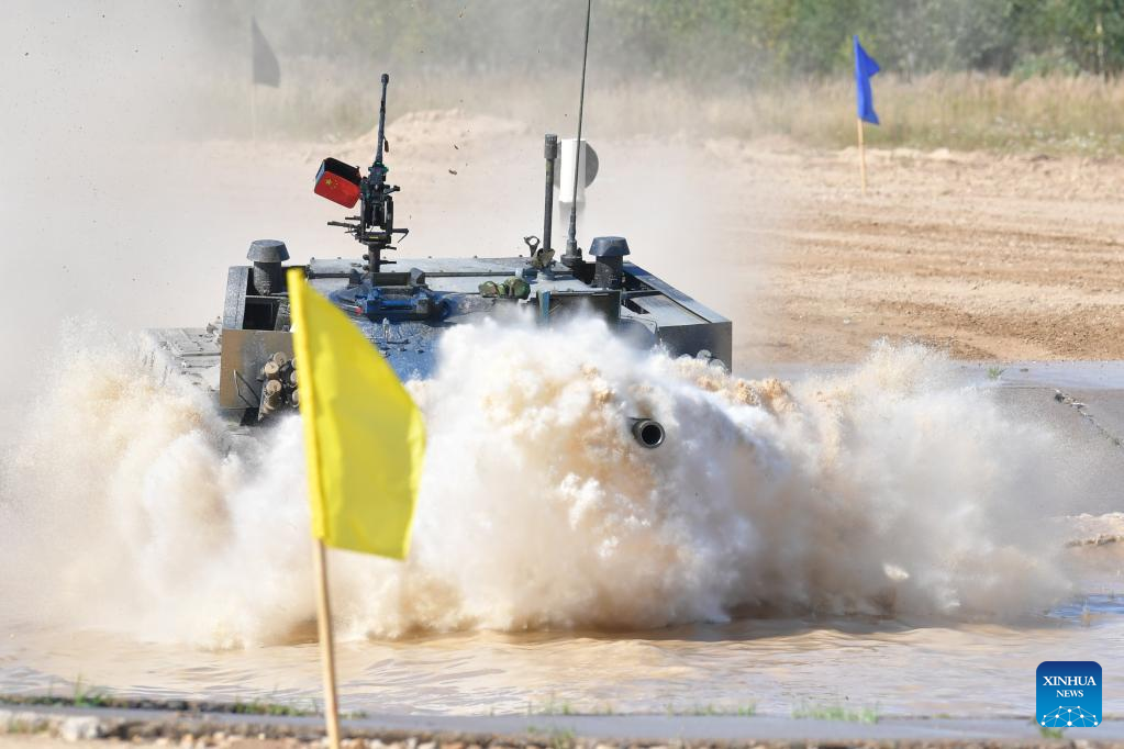 MOSCOW, Aug. 14 (Xinhua) -- The Chinese team successfully completed the first competition in the tank biathlon of the ongoing International Army Games 2022 at the Alabino training ground in the Moscow region on Sunday.
