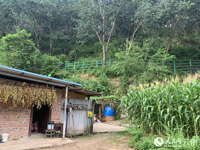 Photo shows a section of a fence installed in the backyard of Feng Yingping, a local villager living in Xiangyanjing village, Xishuangbanna Dai Autonomous Prefecture, southwest China’s Yunnan Province. (People’s Daily Online/Zeng Zhihui)