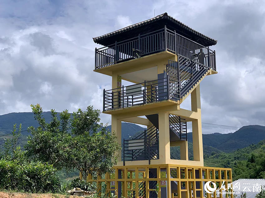 Photo shows a monitoring tower, which has been set up to observe the activities of wild elephants. (People’s Daily Online/Zeng Zhihui)