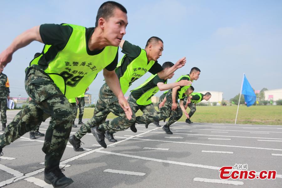 Armed police officers attend a running competition in northwest China's Qinghai Province. (Photo: China News Service/Zhang Suo)