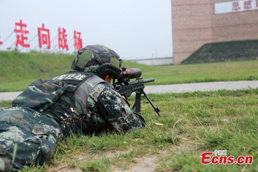 An armed police officer attends a shooting competition in northwest China's Qinghai Province. (Photo: China News Service/Yu Jinjian)