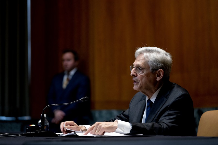 U.S. Attorney General Merrick Garland testifies before the Senate Appropriations Subcommittee on Commerce, Justice, Science, and Related Agencies during a hearing on A Review of the President's Fiscal Year 2022 Funding Request for the U.S. Department of Justice in Washington, D.C., the United States, on June 9, 2021. (Stefani Reynolds/Pool via Xinhua)
