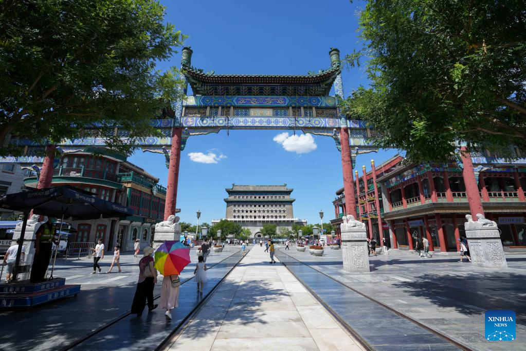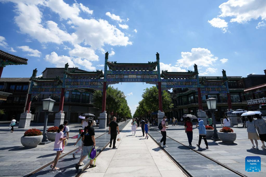 People visit the Qianmen street in Beijing, capital of China, Aug. 16, 2022. (Xinhua/Ju Huanzong)