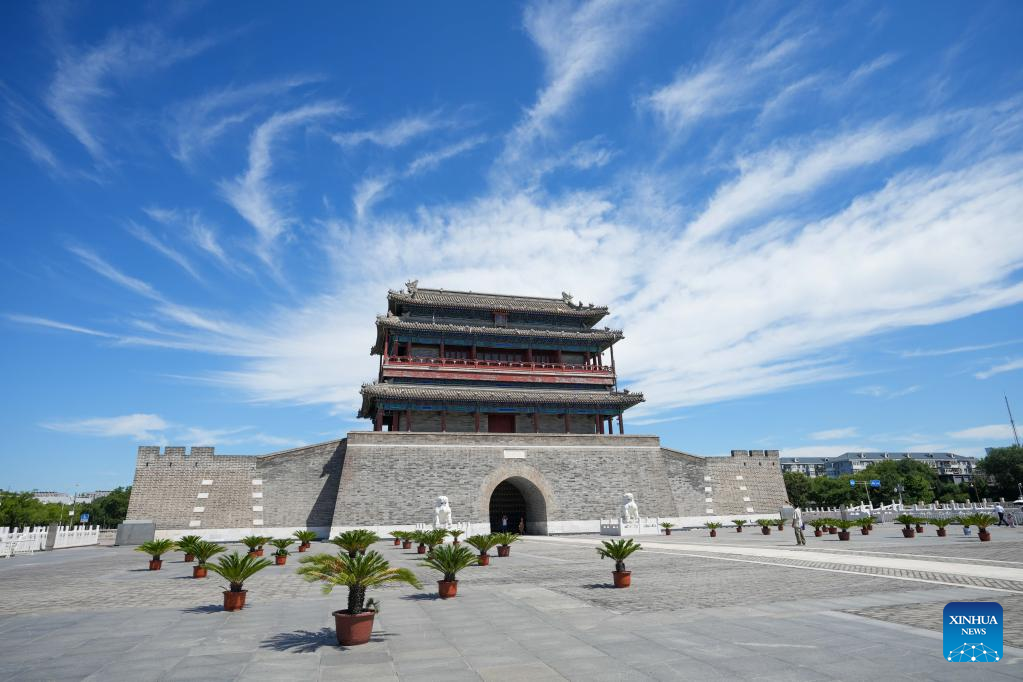 Photo taken on Aug. 16, 2022 shows the scene of Yongdingmen (Gate of Perpetual Peace) in Beijing, capital of China. (Xinhua/Ju Huanzong)