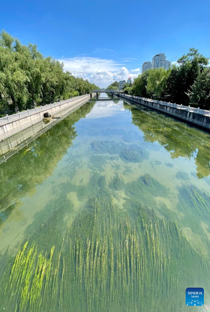 Photo taken on Aug. 16, 2022 shows the scenery of the south city moat in Beijing, capital of China. (Xinhua/Yue Yuewei)