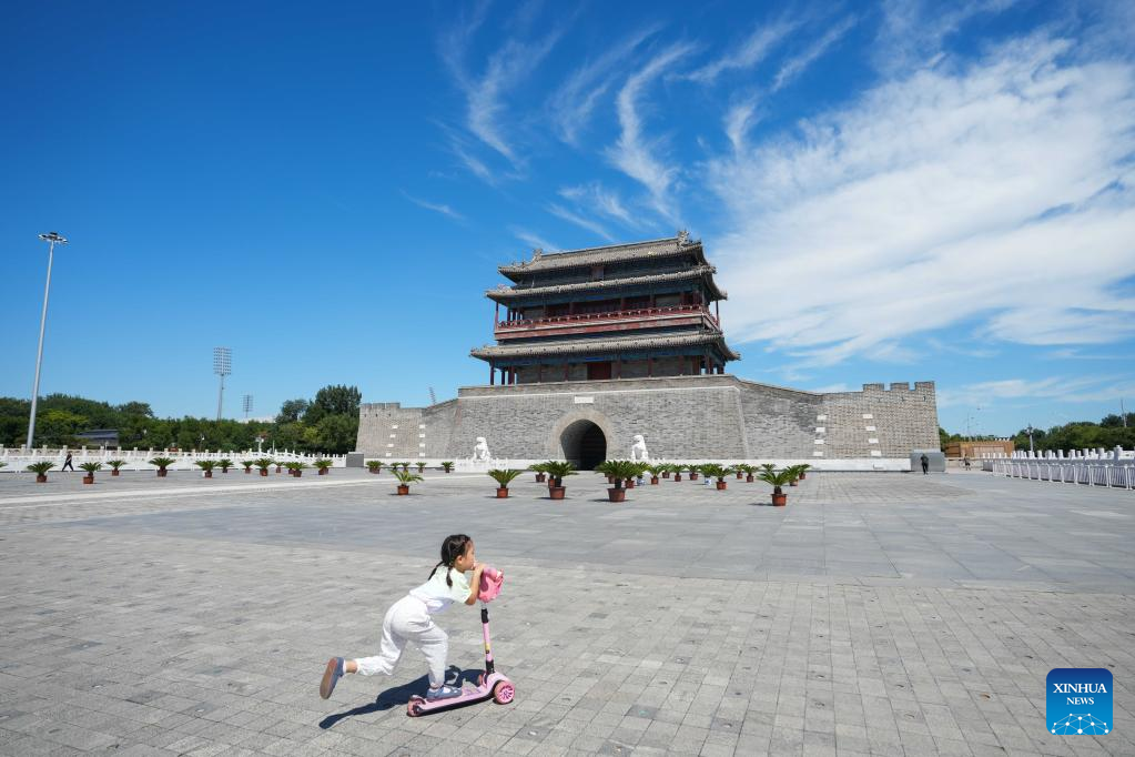 Visitors tour the Yongdingmen park in Beijing, capital of China, Aug. 16, 2022. (Xinhua/Ju Huanzong)