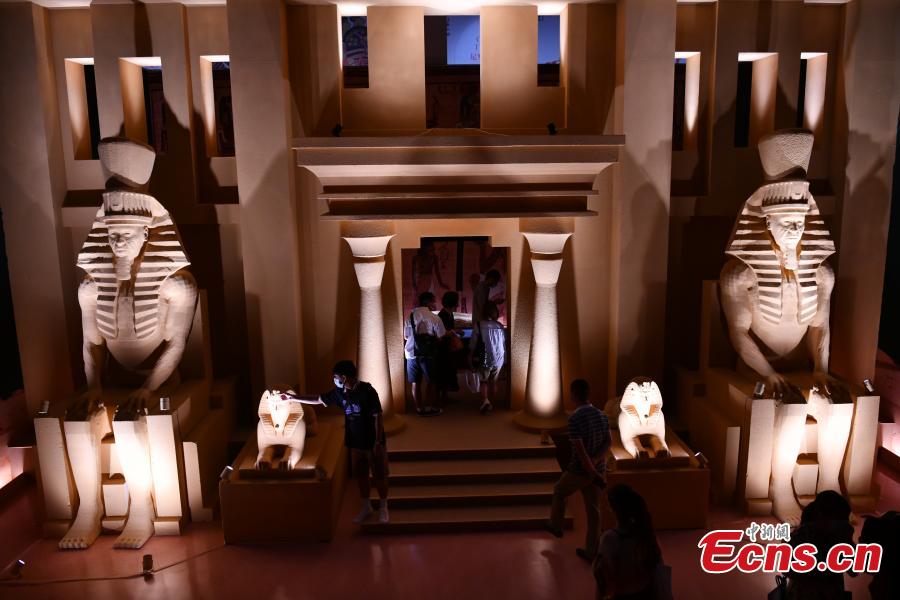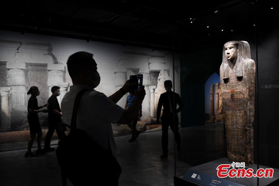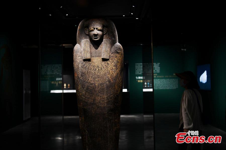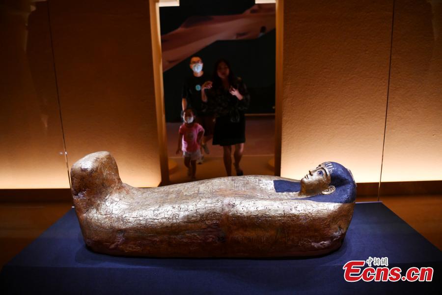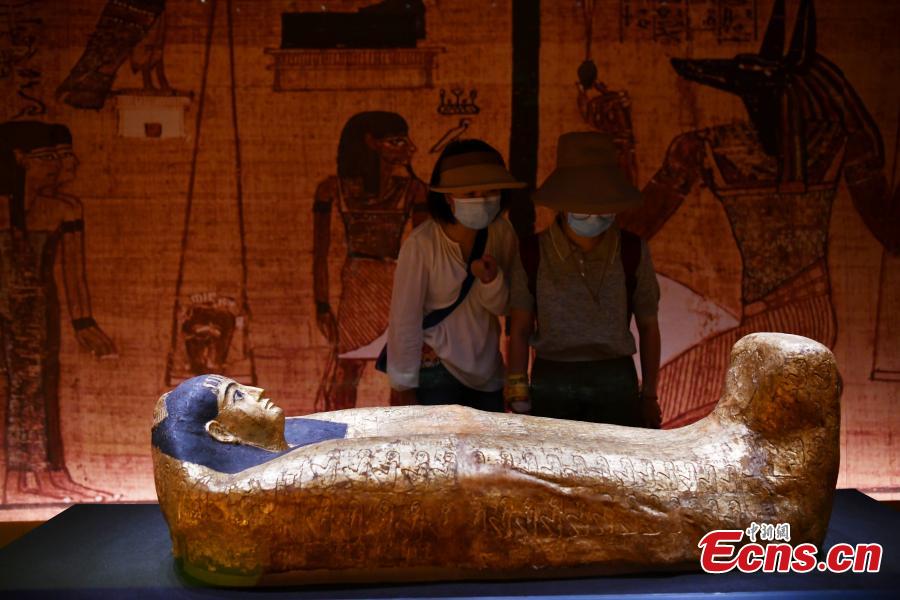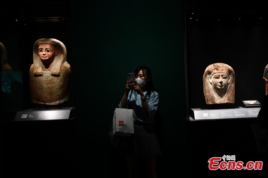 Cultural relics of Egypt are on show during the "Meet Ancient Egypt: the Golden Mummies" exhibition at the Meet You Museum Chengdu branch, Chengdu, southwest China's Sichuan Province, Aug. 18, 2022. (Photo: China News Service/Zhang Lang)