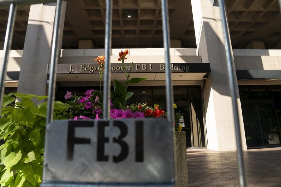 Photo taken on Aug. 16, 2022 shows the Federal Bureau of Investigation (FBI) headquarters behind security fencing in Washington, D.C., the United States. (Xinhua/Liu Jie)
