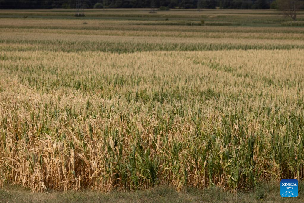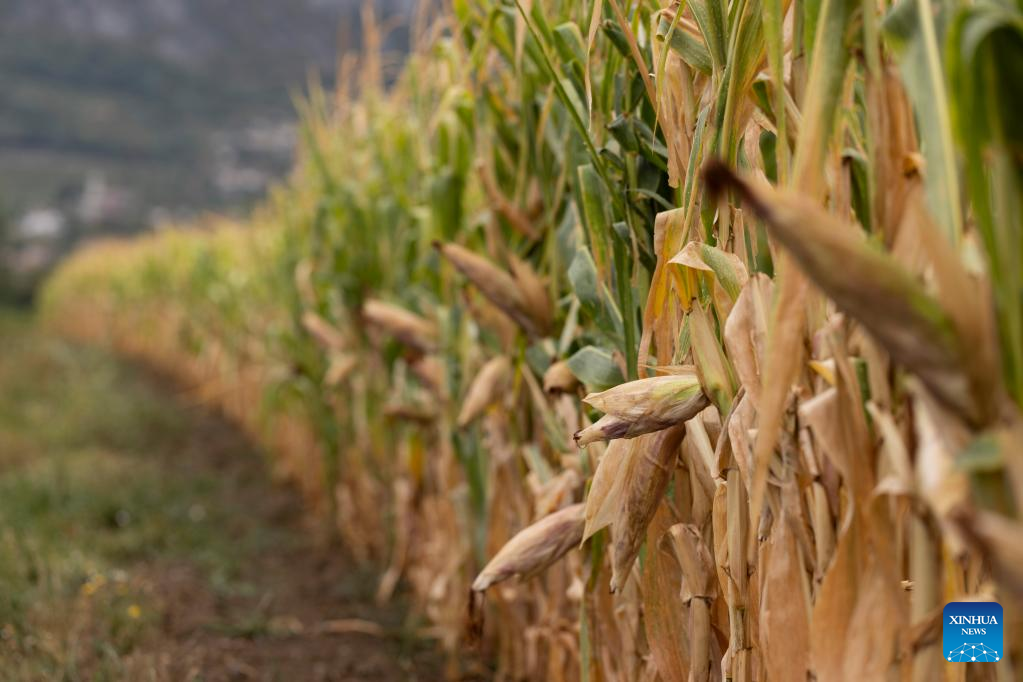 Withered corn crops are seen at Vipava valley in Nova Gorica, Slovenia, Aug. 16, 2022. Slovenia has faced persistent drought, especially in Vipava valley and the Karst region. (Photo by Zeljko Stevanic/Xinhua)