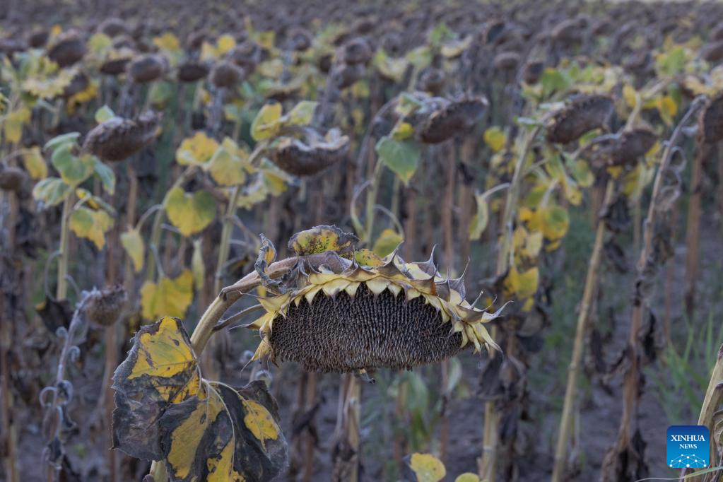 Photo taken on Aug. 18, 2022 shows a sunflower field near Pakozd, Hungary. (Photo by Attila Volgyi/Xinhua)