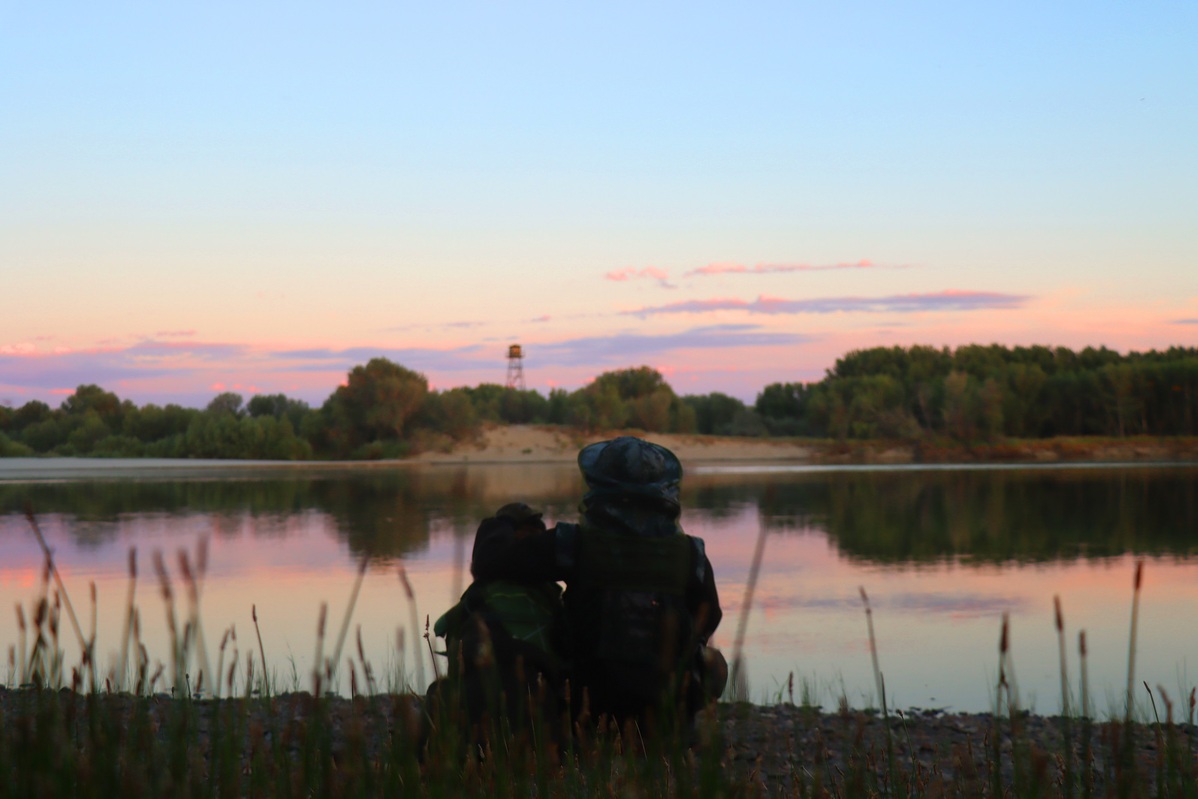 A photo shows Yanlong, a military dog, watching the sunset with its handler in Altay prefecture in the Xinjiang Uygur autonomous region. [Photo provided to chinadaily.com.cn]
