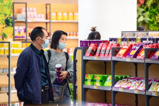 Visitors select imported products during the 2021 Global Digital Trade Conference and Wuhan (Hankoubei) Commodities Fair in Wuhan, capital of central China's Hubei Province, Oct. 12, 2021. (Xinhua/Wu Zhizun)