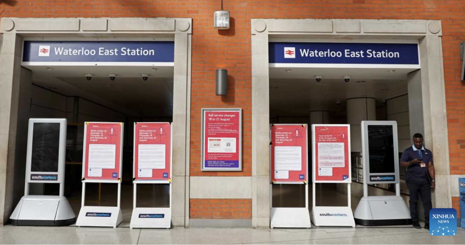 LONDON, Aug. 20 (Xinhua) -- At Central London railway terminus Paddington on Friday, transport disruption was a headache for Jacob, a passenger from Colchester in southeast England. He was scheduled to travel on Saturday but had to make it one day earlier because of ongoing strikes.