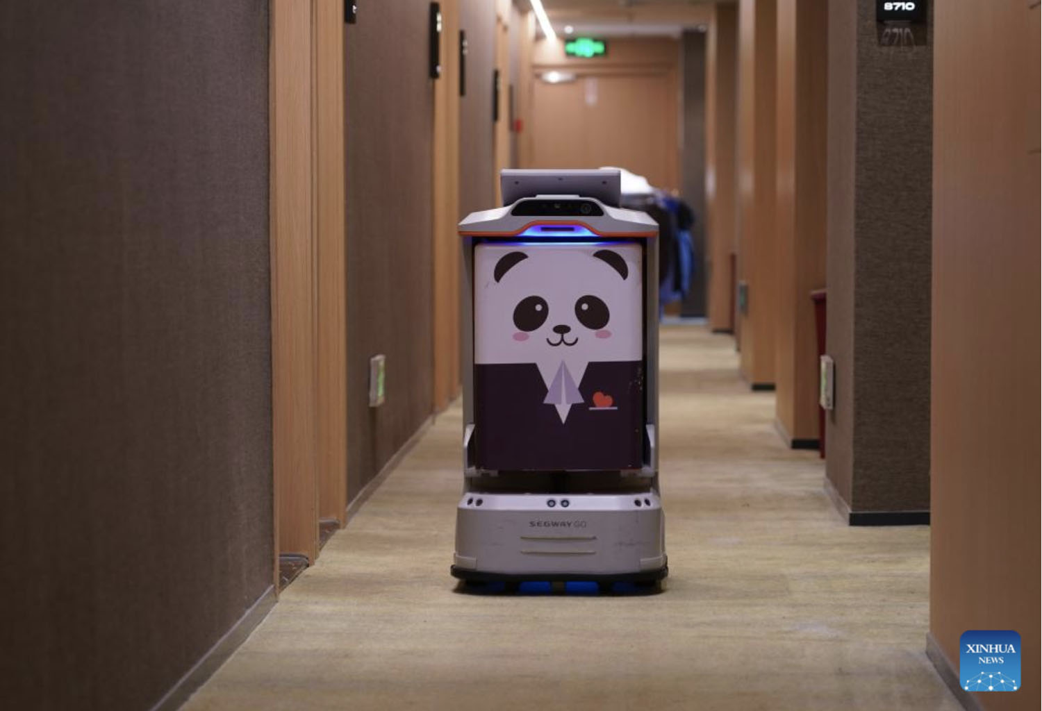 A service robot moves through a corridor to deliver items at a hotel in Chaoyang District of Beijing, capital of China, Aug. 13, 2022. (Xinhua/Ren Chao)