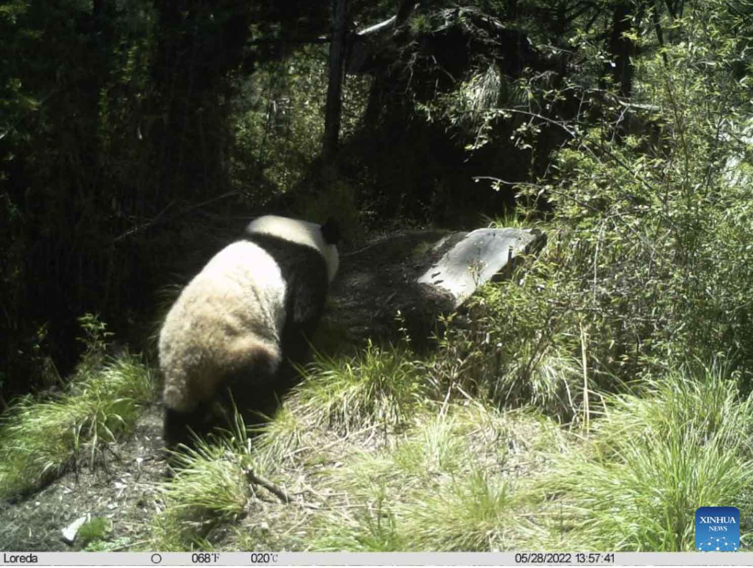 Photo taken by an infrared camera on May 28, 2022 shows a wild giant panda in the Giant Panda National Park's Tangjiahe area in southwest China's Sichuan Province. A wild giant panda was captured by an infrared camera several times in the Giant Panda National Park in southwest China's Sichuan Province.