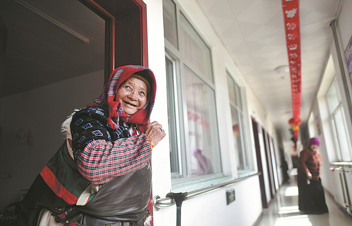 A Tibetan woman enjoys life at a nursing home in Zhidoi county, Qinghai, in March last year. ZHANG HONGXIANG/XINHUA