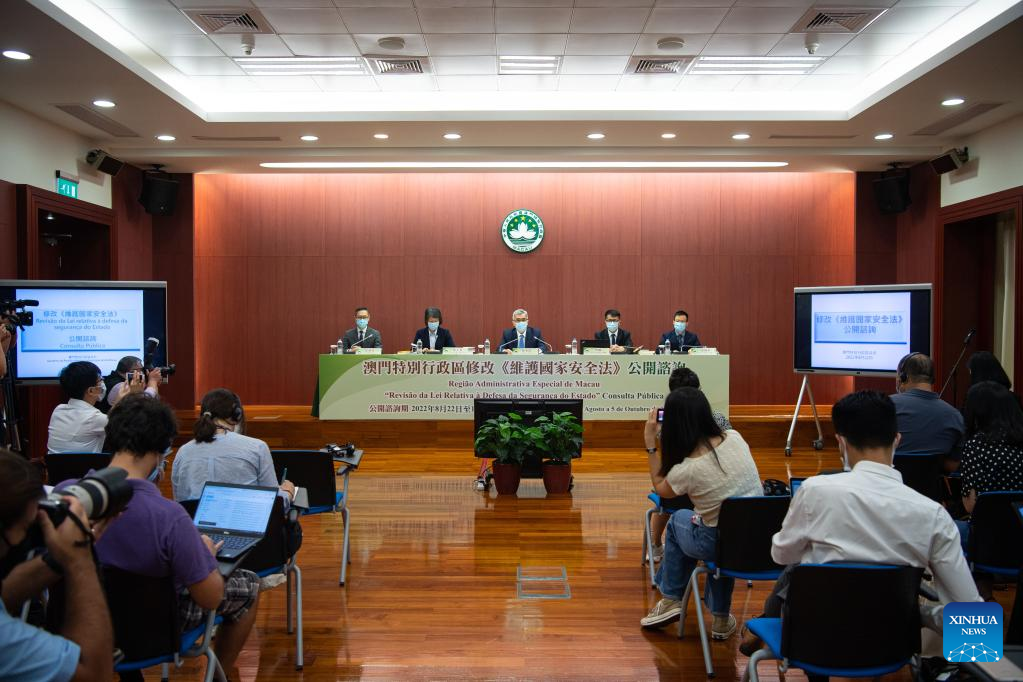 MACAO, Aug. 22 (Xinhua) -- China's Macao Special Administrative Region (SAR) government on Monday announced the start of public consultation on amendment to its law on safeguarding national security for a period until Oct. 5.