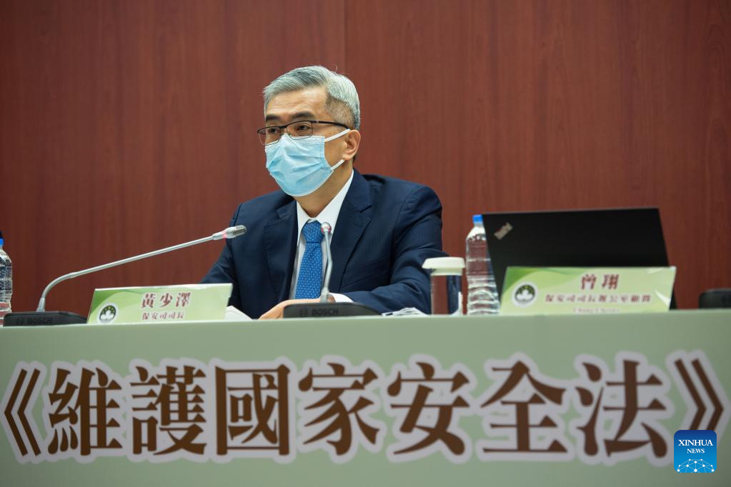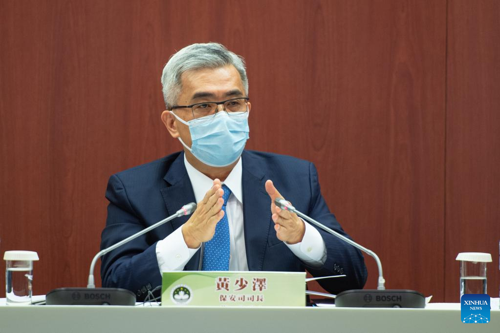 Wong Sio Chak, secretary for security of the Macao Special Administrative Region (SAR) government, speaks at a press conference in Macao, south China, Aug. 22, 2022. (Xinhua/Cheong Kam Ka)