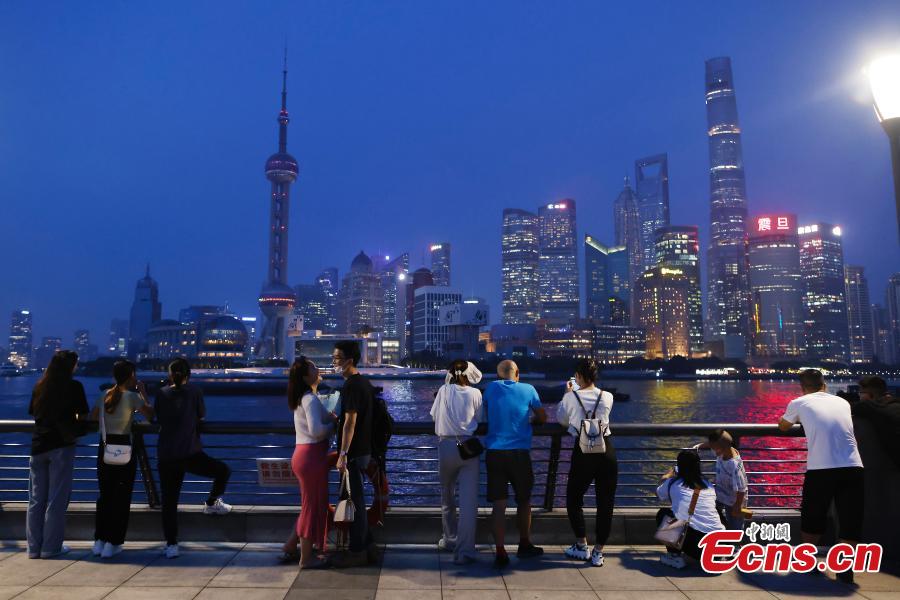 Tourists visit the Bund with the skyline of Pudong in the background in Shanghai, Aug. 22, 2022. (Photo: China News Service/Yin Liqin)