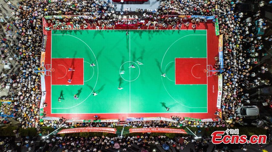 Villagers compete during the basketball match at Matou county of Ruichang city, east China's Jiangxi Province, Aug. 22, 2022. (Photo: China News Service/Wei Dongsheng)