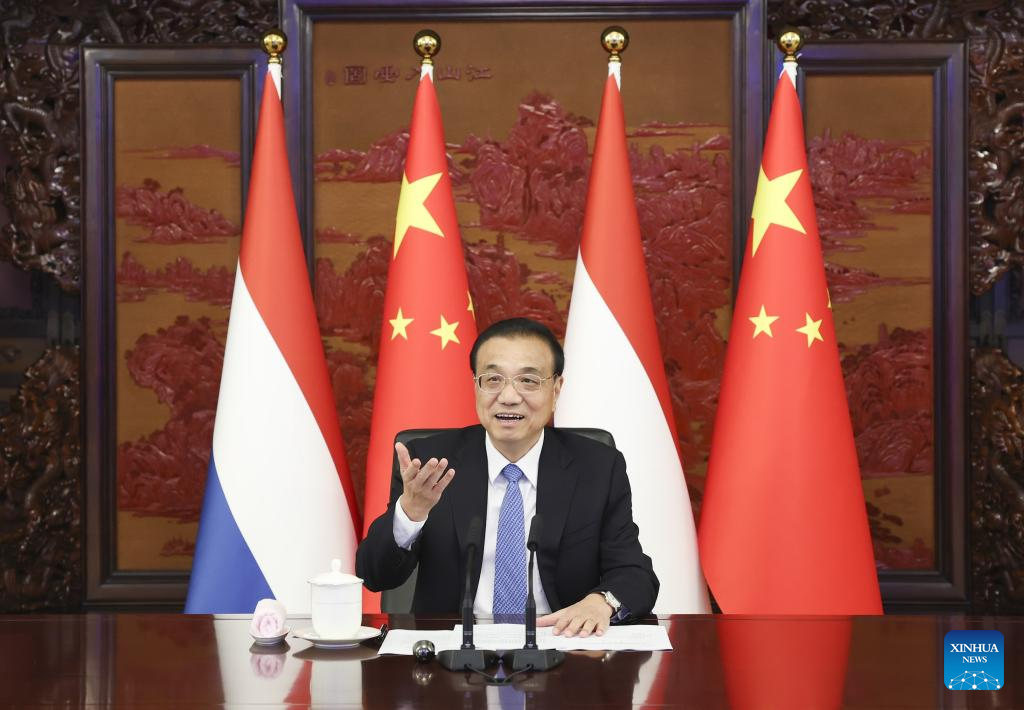 Chinese Premier Li Keqiang meets virtually with Dutch Prime Minister Mark Rutte in Beijing, capital of China, Aug. 23, 2022. (Xinhua/Ding Lin)