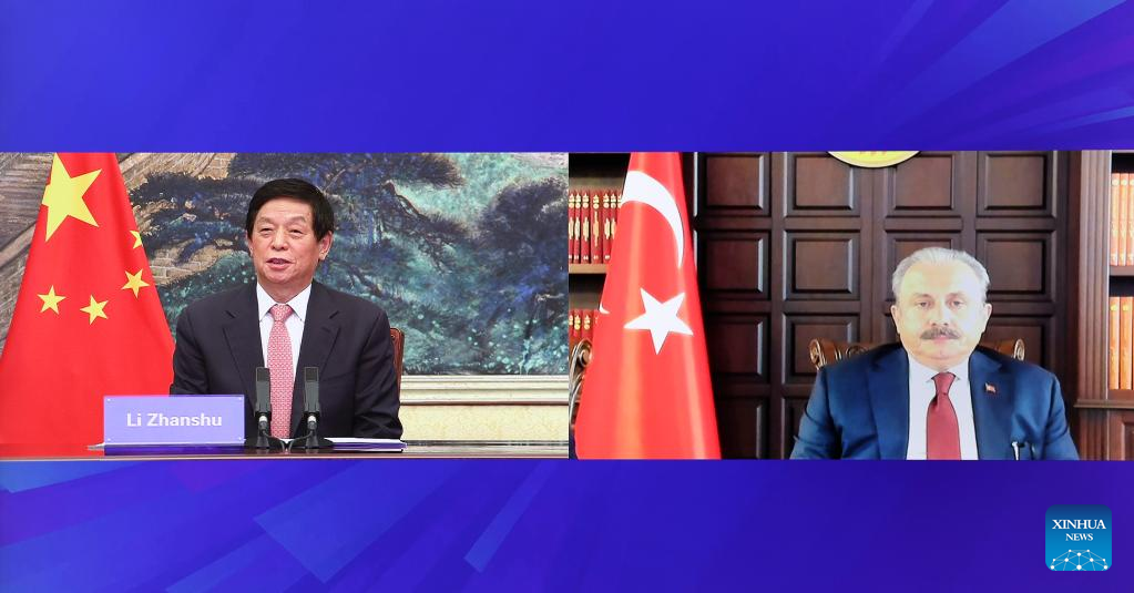 BEIJING, Aug. 24 (Xinhua) -- China's top legislator Li Zhanshu on Wednesday held talks with Turkish Parliament Speaker Mustafa Sentop via video link, with both sides vowing to enhance parliamentary exchanges and cooperation.