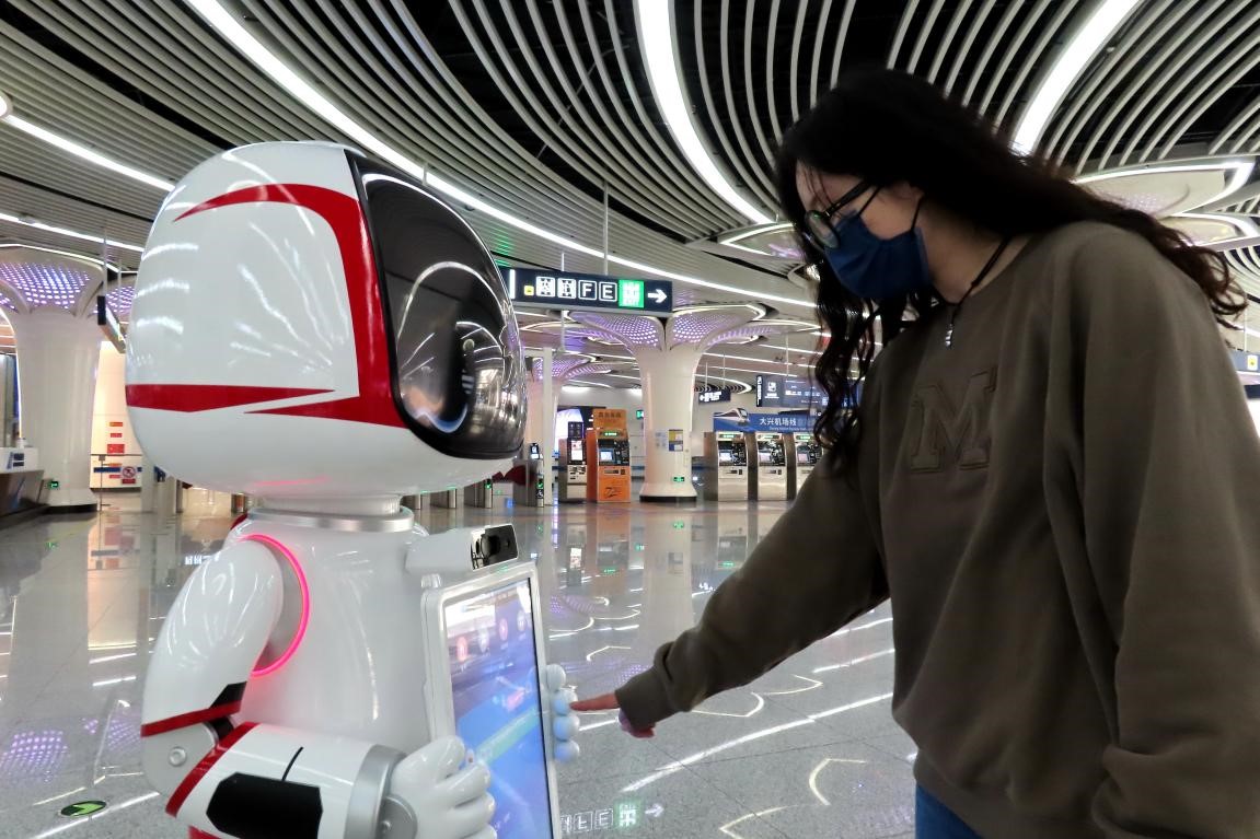 Recently, a batch of smart service robots started their "careers" at the Caoqiao station of the Daxing Airport Express of the Beijing Subway. These speech-interactive machines provide route information and schedule and are able to guide passengers to the locations they want.