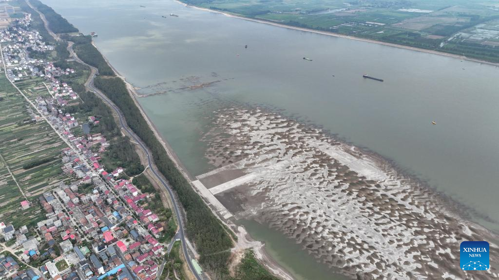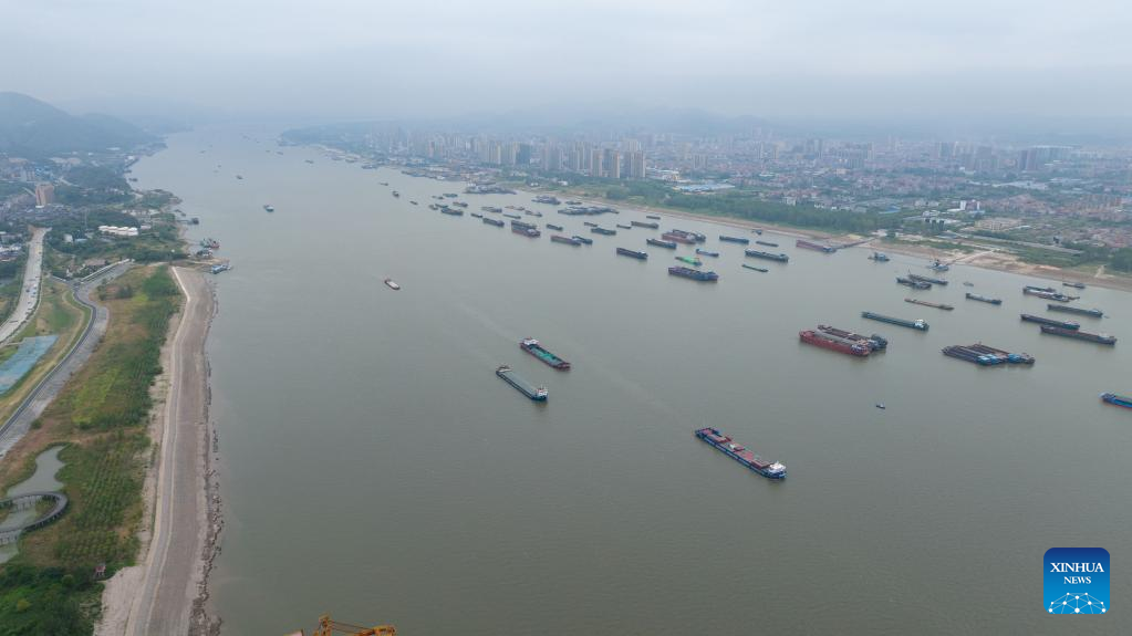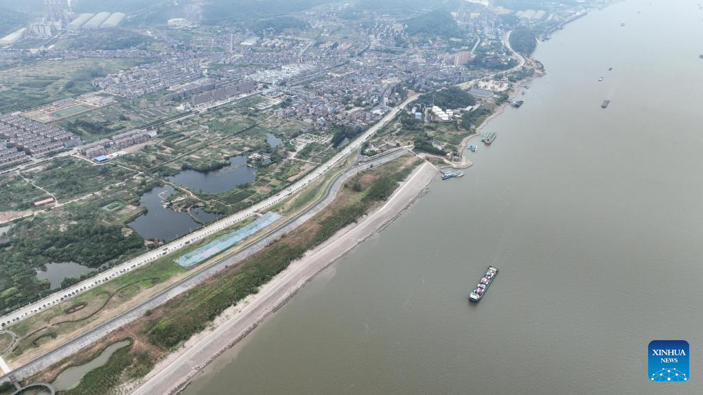 Aerial photo taken on Aug. 24, 2022 shows a section of the Yangtze River in Chaisang District of Jiujiang City, east China's Jiangxi Province.