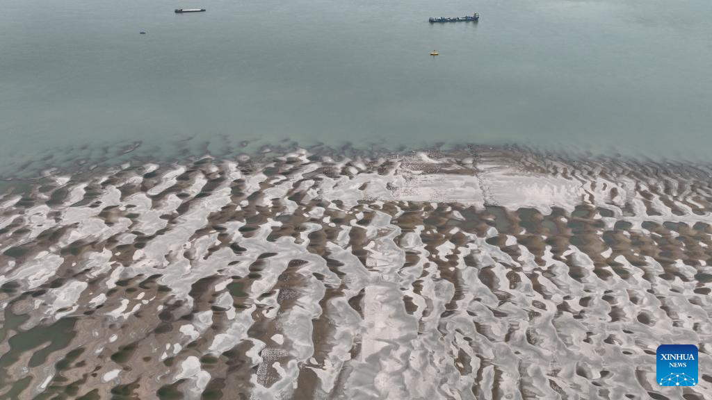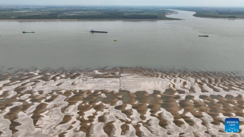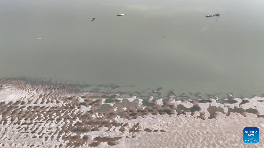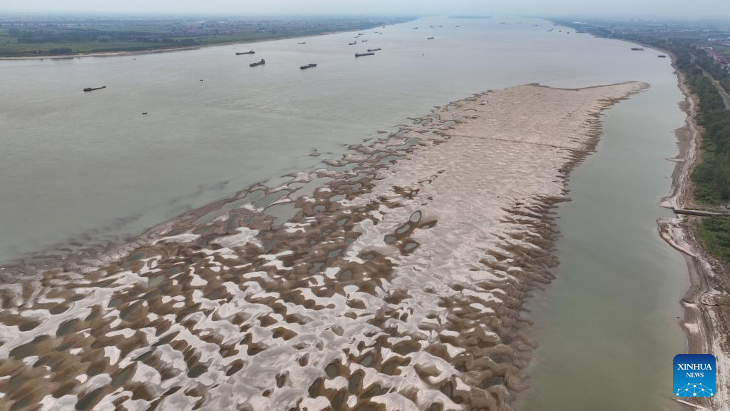 Water level of Yangtze River in east China's Jiujiang falls due to high temperature, less rainfall