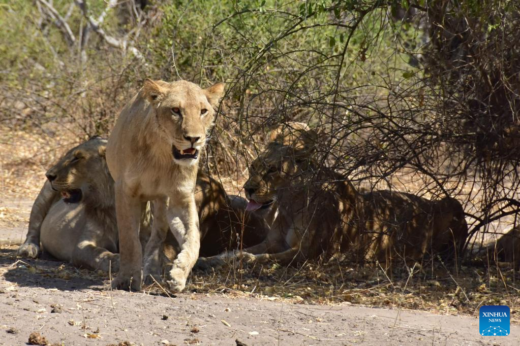 Lions are seen at Chobe National Park, northern Botswana, Aug. 21, 2022. (Xinhua/Teng Junwei)