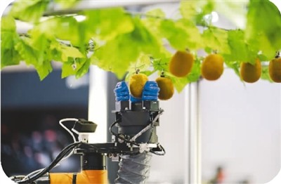 Photo shows a fruit-picking robot during an expo at the World Robot Conference 2022 in Beijing. (Xinhua/Ju Huanzong)