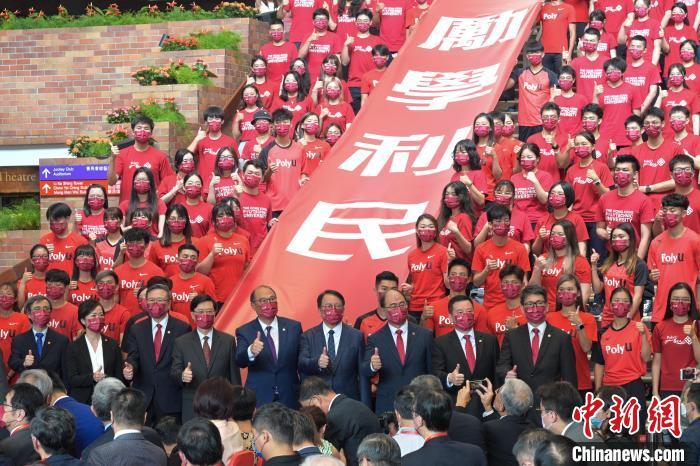 John LEE Ka-chiu, Chief Executive of the Hong Kong Special Administrative Region and Chancellor of PolyU, and some dignitaries attend the unveiling ceremony of main entrance of the Hong Kong Polytechnic University (PolyU), August 24, 2022. (Photo: China News Service)