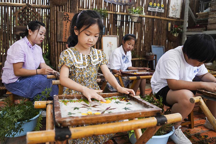 Children from Huamao Village and other nearby villages make handicrafts at a papermaking workshop in Huamao Village in Zunyi, southwest China’s Guizhou Province. (People’s Daily Online/Peng Yukai)