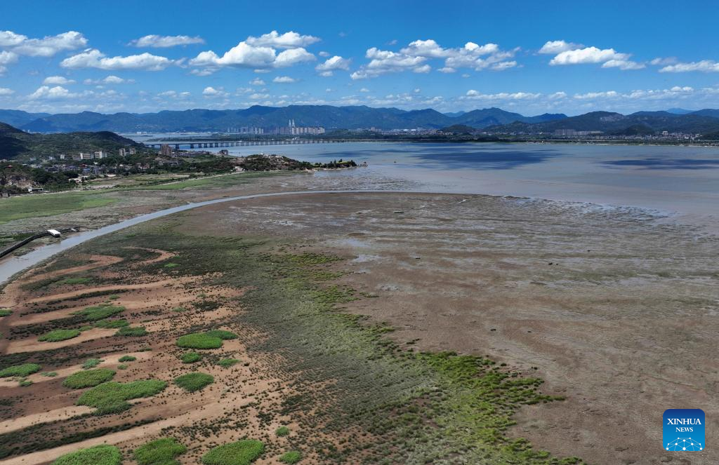 Aerial photo shows a view of the Minjiang River estuary wetland in southeast China's Fujian Province, Aug. 25, 2022. The wetland locates on a bird migration route between East Asia and Australia. (Xinhua/Wei Peiquan)