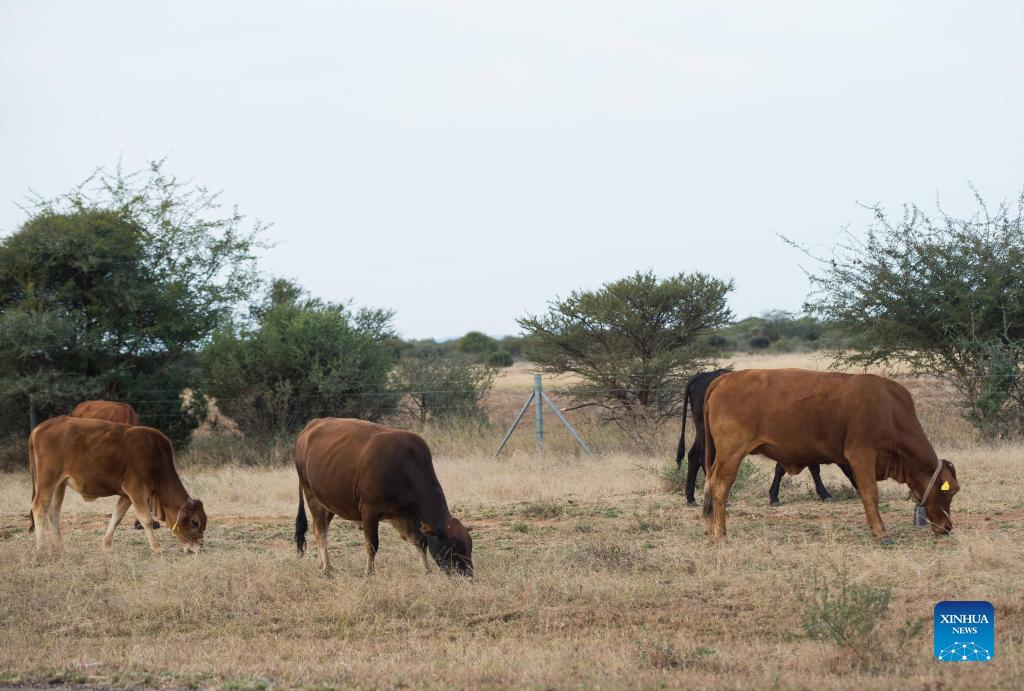 Cattle graze in Kweneng District, Botswana, July 27, 2022. Botswana has suspended the movement of cloven hoof animals in the country over suspected foot and mouth disease cases, the country's Ministry of Agricultural Development and Food Security said Wednesday. (Photo by Tshekiso Tebalo/Xinhua)