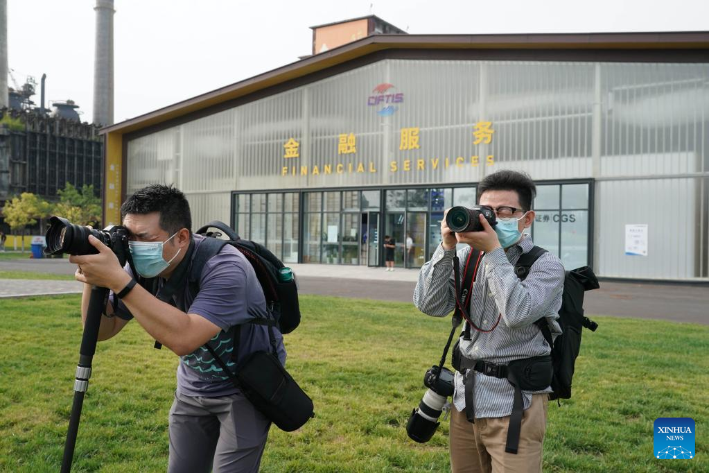 Journalists attend a media preview of the 2022 China International Fair for Trade in Services (CIFTIS) at Shougang Park in Beijing, capital of China, Aug. 29, 2022.