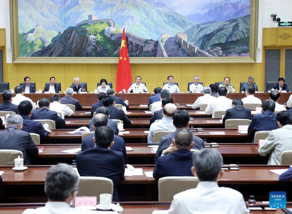 Chinese Premier Li Keqiang, also a member of the Standing Committee of the Political Bureau of the Communist Party of China (CPC) Central Committee, speaks at a teleconference on deepening reforms to streamline administrative approval, delegate power to lower levels, and improve regulations and services, Aug. 29, 2022. Vice Premier Han Zheng, also a member of the Standing Committee of the Political Bureau of the CPC Central Committee, presided over the meeting. (Xinhua/Liu Weibing)