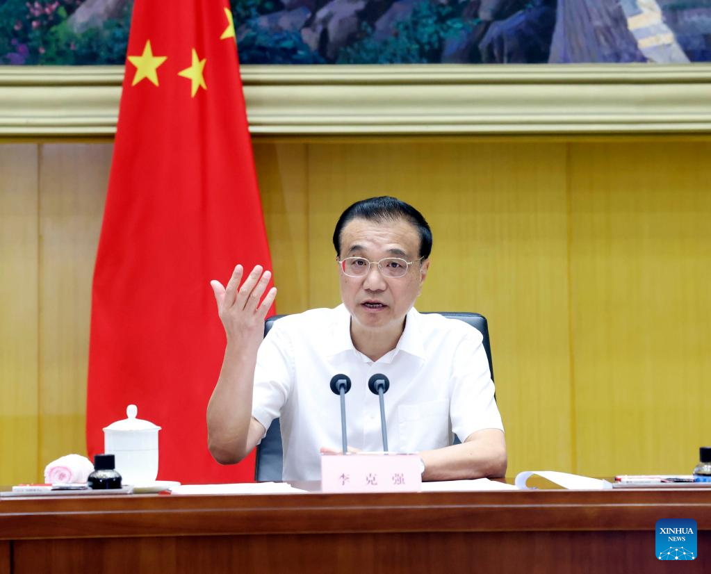 Chinese Premier Li Keqiang, also a member of the Standing Committee of the Political Bureau of the Communist Party of China (CPC) Central Committee, speaks at a teleconference on deepening reforms to streamline administrative approval, delegate power to lower levels, and improve regulations and services, Aug. 29, 2022. Vice Premier Han Zheng, also a member of the Standing Committee of the Political Bureau of the CPC Central Committee, presided over the meeting. (Xinhua/Liu Weibing)