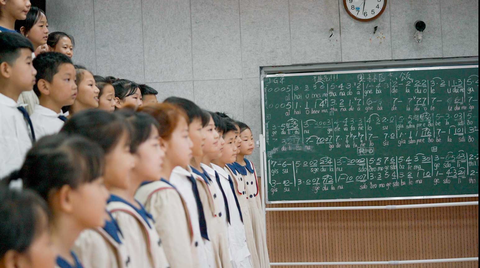 Photo taken on July 28,2022 shows Malanhua Children’s Choir singing at Fuping County’s Bayi primary school who performed at the Beijing 2022 opening ceremony. (People’s Daily Online / Yuan Meng)