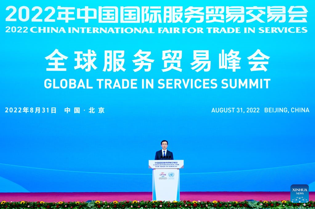 Han, also a member of the Standing Committee of the Political Bureau of the Communist Party of China Central Committee, made the remarks while delivering a keynote speech at the Summit of 2022 China International Fair for Trade in Services (CIFTIS).
