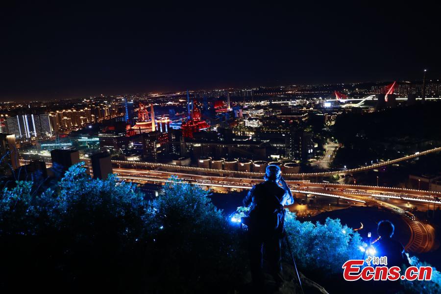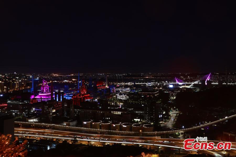 The Shougang Park, a venue of the 2022 China International Fair for Trade in Services, is illuminated in Beijing, Aug. 31, 2022. (Photo: China News Service/Sheng Jiapeng)