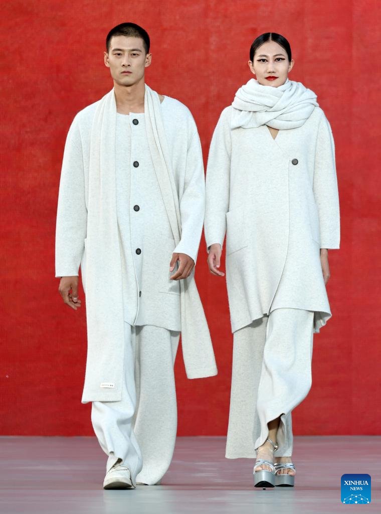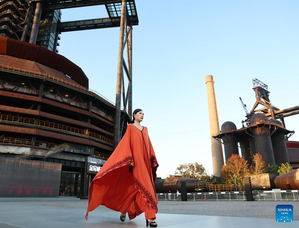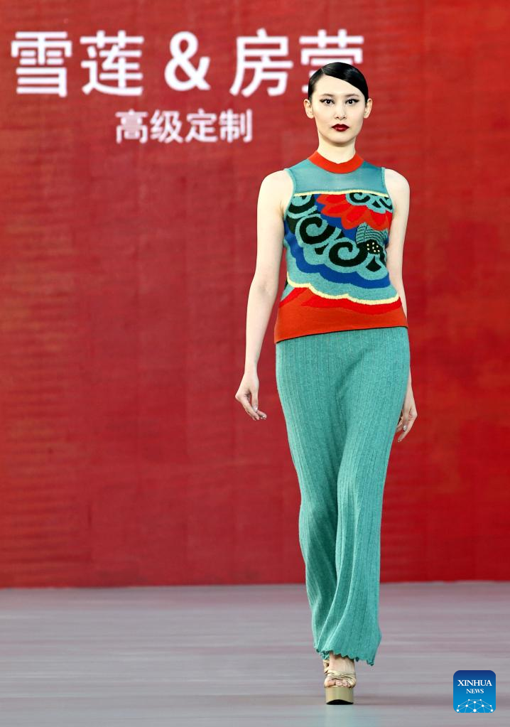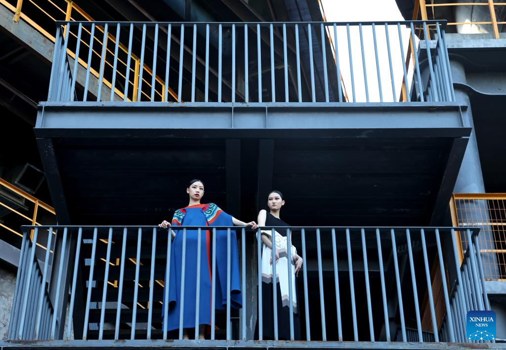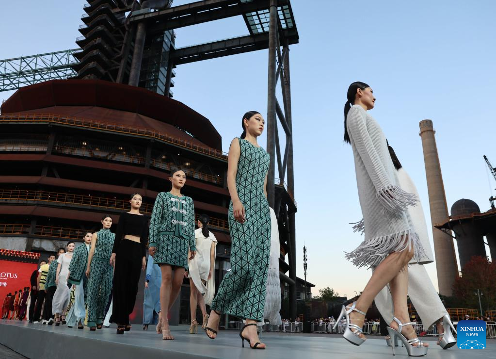 Models present creations of Chinese designer Fang Ying during the "Snow Lotus-Fang Ying Haute Couture" fashion show, which is also a part of the 2022 China International Fair for Trade in Services (CIFTIS), at the Shougang Park in Beijing, capital of China, Sept. 1, 2022. (Xinhua/Chen Jianli)