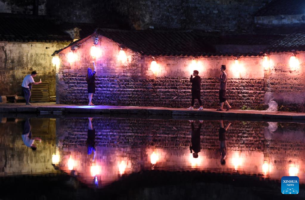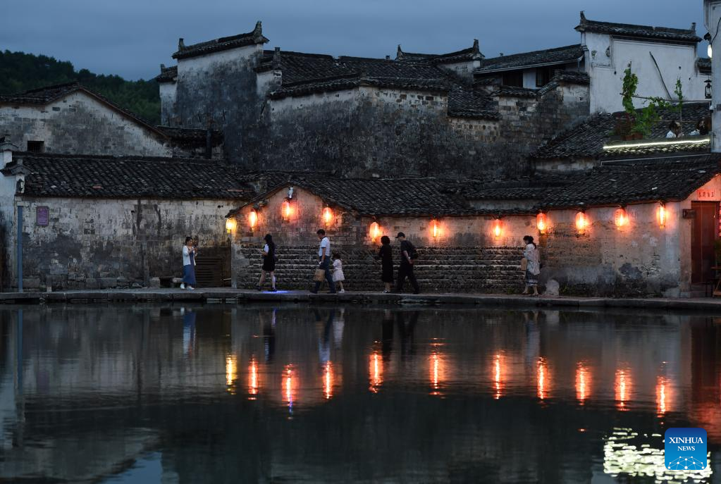 Tourists visit Hongcun Village in Yixian County, east China's Anhui Province, Aug. 31, 2022. Hongcun Village deeply integrates night economy with tourism industry to promote rural development. (Xinhua/Zhou Mu)