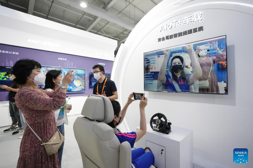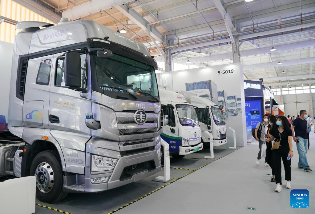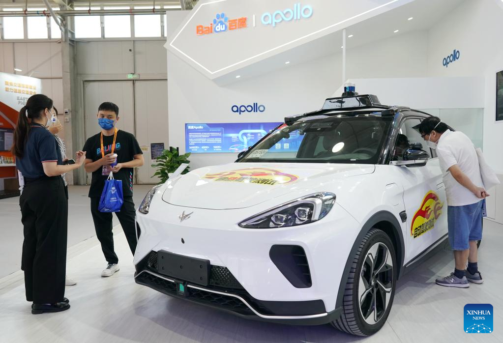 Photo taken on Sept. 2, 2022 shows a self-driving car at the supply chain and business services exhibition during the 2022 China International Fair for Trade in Services (CIFTIS) in Beijing, capital of China. The 2022 China International Fair for Trade in Services (CIFTIS) is held in Beijing from Aug. 31 to Sept. 5. The six-day event this year has set up nine thematic exhibitions, including cultural and tourism services, education services, hygiene and health services, engineering consulting and construction services, financial services, supply chain and business services, telecommunication computer and information services, sports services and environmental services. (Xinhua/Zhang Chenlin)