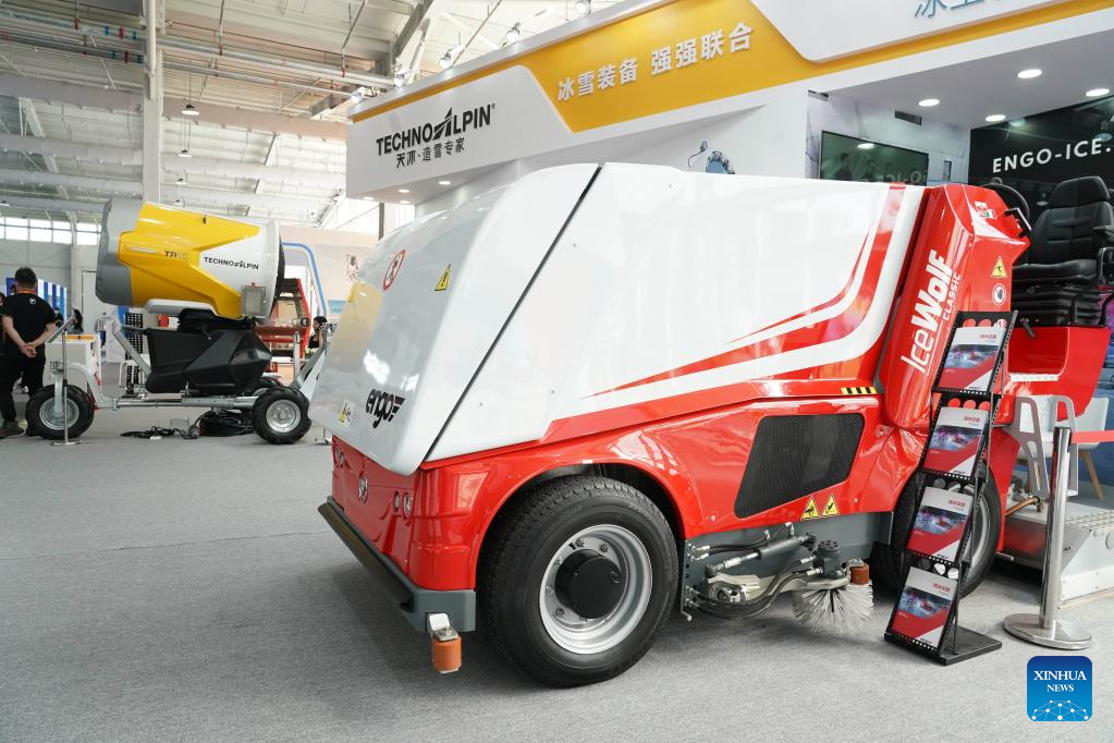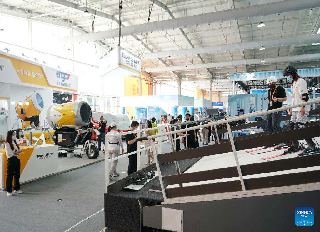 An ice-making device is seen at the sports services exhibition hall during the 2022 China International Fair for Trade in Services (CIFTIS) in Beijing, capital of China, Sept. 2, 2022. The sports services exhibition, which covers an indoor area of 13,200 square meters and an outdoor area of 9,000 square meters, is the largest among all exhibitions staged during the 2022 CIFTIS. (Xinhua/Ren Chao)