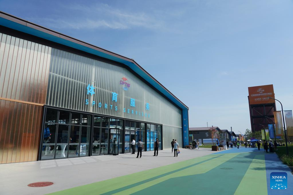 Photo taken on Sept. 2, 2022 shows an exterior view of the sports services exhibition hall during the 2022 China International Fair for Trade in Services (CIFTIS) in Beijing, capital of China. The sports services exhibition, which covers an indoor area of 13,200 square meters and an outdoor area of 9,000 square meters, is the largest among all exhibitions staged during the 2022 CIFTIS. (Xinhua/Ren Chao)