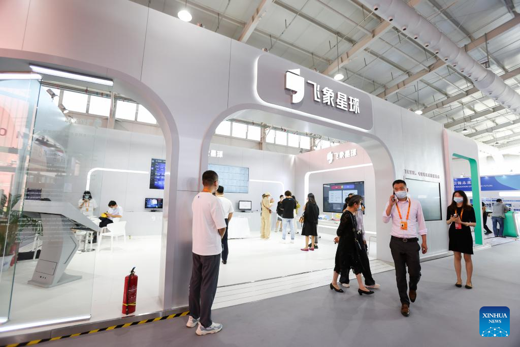 Photo taken on Sept. 2, 2022 shows the education services exhibition during the 2022 China International Fair for Trade in Services (CIFTIS) in Beijing, capital of China. The 2022 China International Fair for Trade in Services (CIFTIS) is held in Beijing from Aug. 31 to Sept. 5. The six-day event this year has set up nine thematic exhibitions, including cultural and tourism services, education services, hygiene and health services, engineering consulting and construction services, financial services, supply chain and business services, telecommunication computer and information services, sports services and environmental services. (Xinhua/Hao Zhao)
