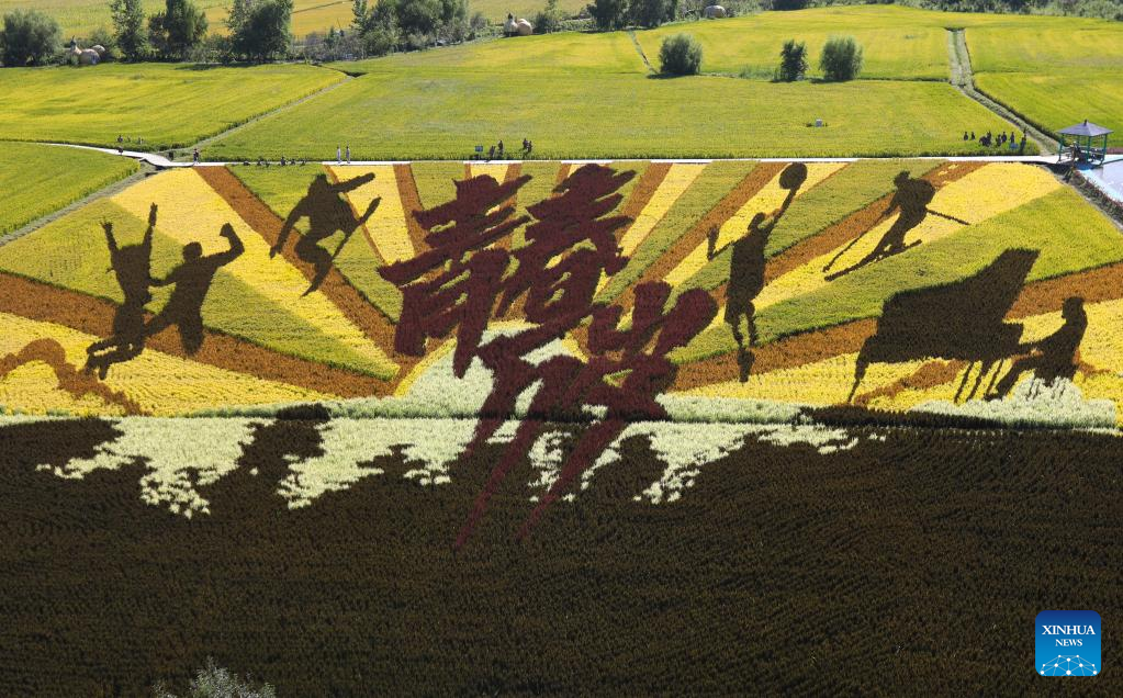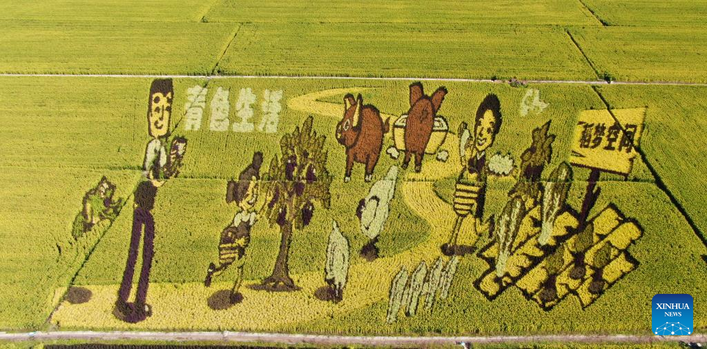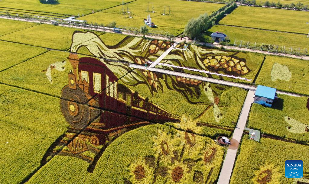 Aerial photo taken on Sept. 1, 2022 shows the graphic in the paddy field in Shenyang, northeast China's Liaoning Province. (Xinhua/Yang Qing)